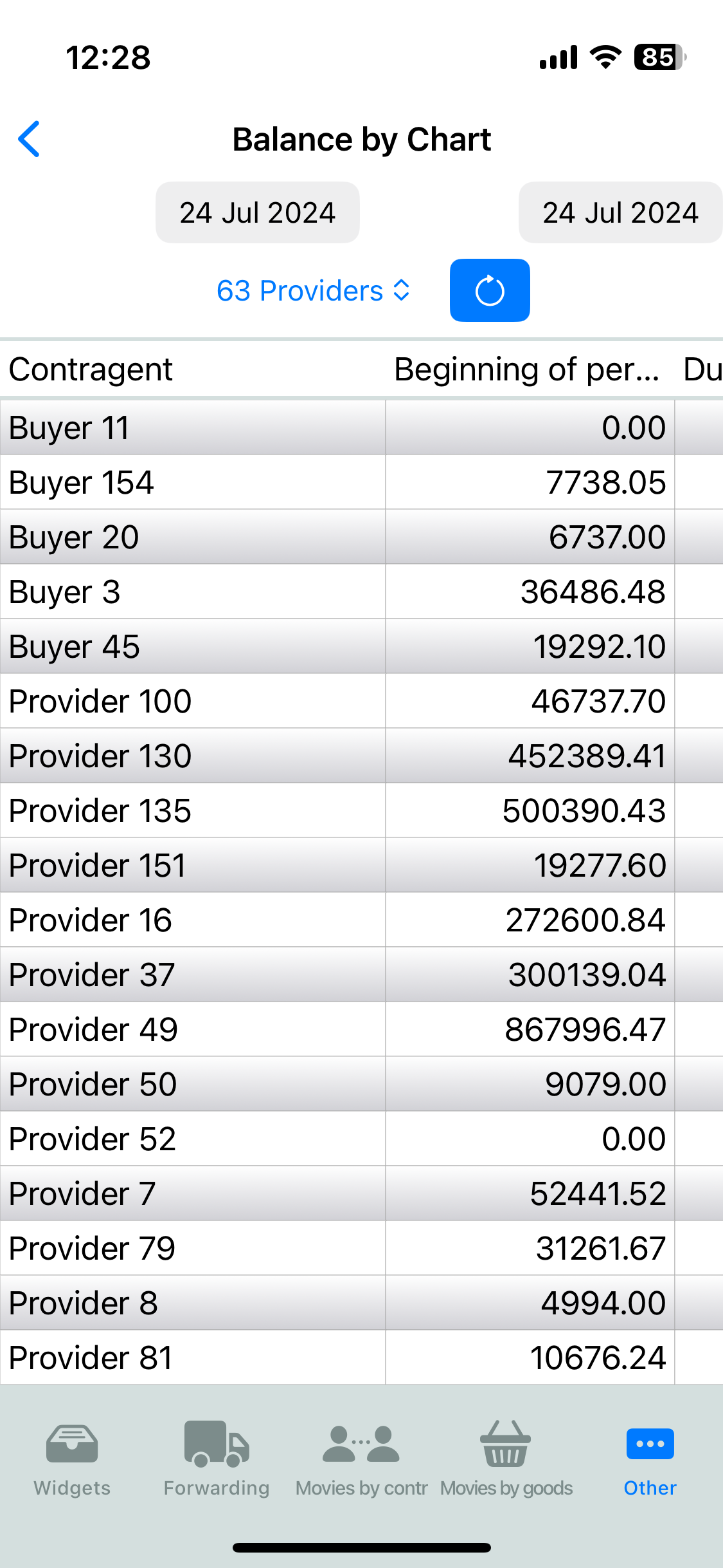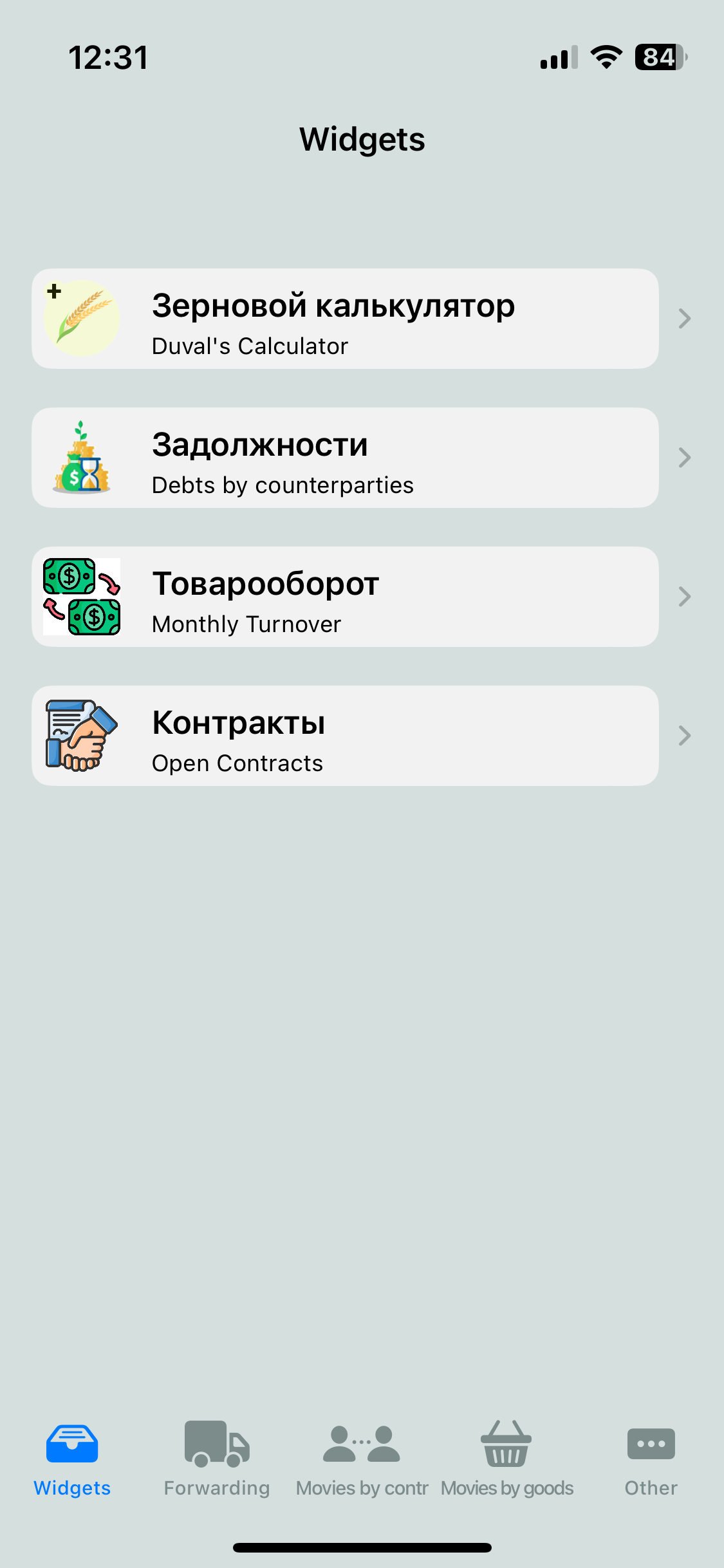 Мобильное приложение повторяет функциональные возможности веб-приложения, что позволяет пользователям выполнять те же действия, что и на компьютере. Все операции, такие как создание и редактирование товарных позиций, управление контрагентами, трейдерами, контрактами, а также формирование отчетов, доступны прямо на мобильном устройстве. Это дает возможность работать с данными, не ограничиваясь рабочим местом и временем.